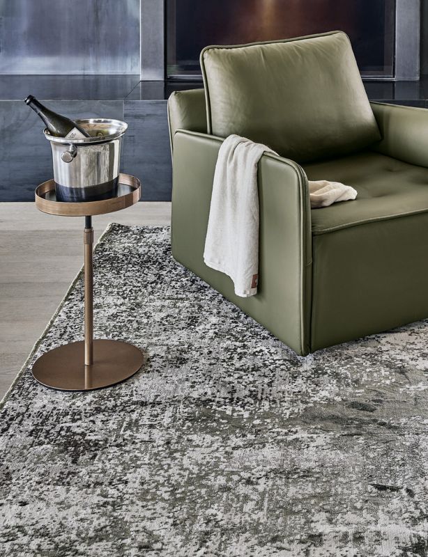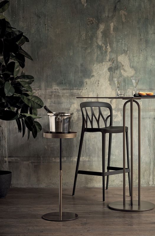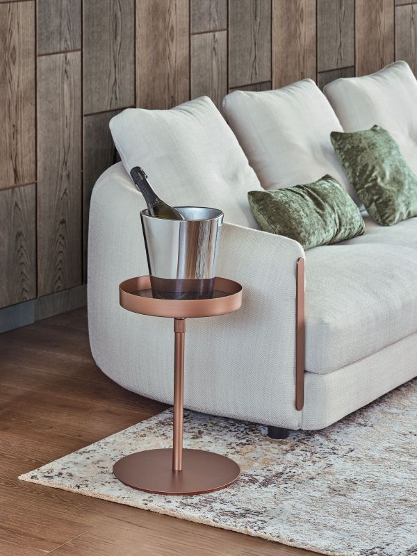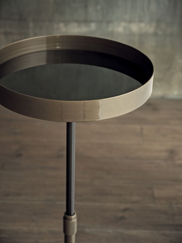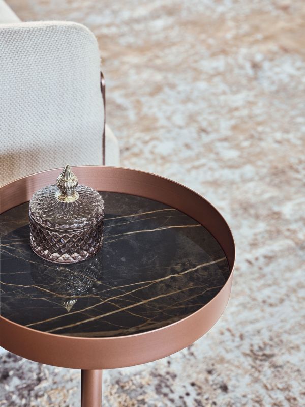 漆面金属框架的咖啡桌。装饰性细节(脚和框架)为漆面金属。桌面为亮光玻璃,天鹅绒哑光防刮玻璃和超级大理石。内柱为亮黑色。